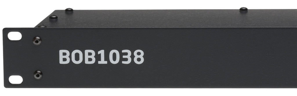 • The BOB1038 is 1RU; 19" W x 5.5" D x 1.75" H (482.6mm W x 139.7mm D x 44.5mm H).