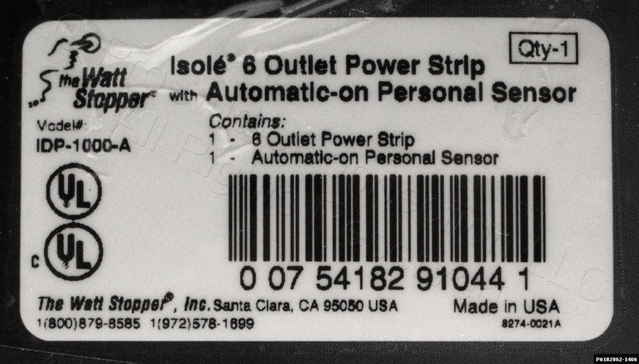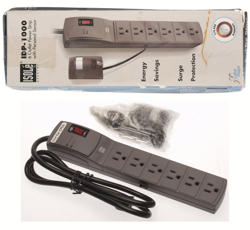 WattStopper IDP-1000 Isole Motion Sensing 6 Way Power Strip PIR Occupancy Sensor