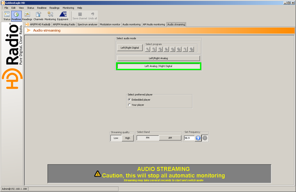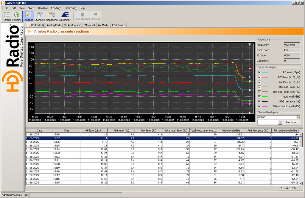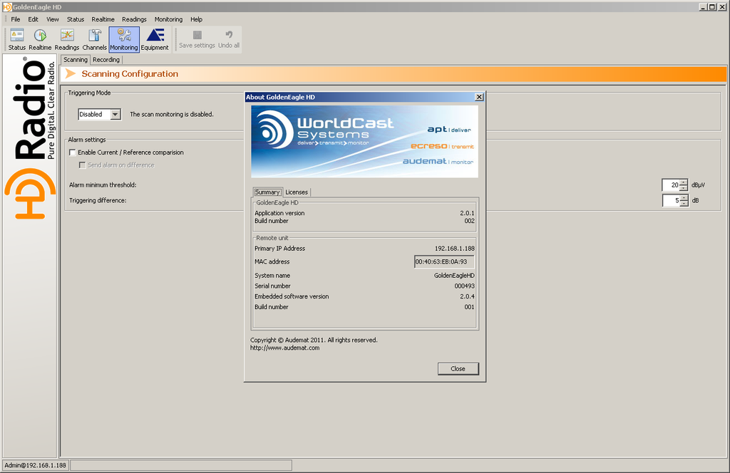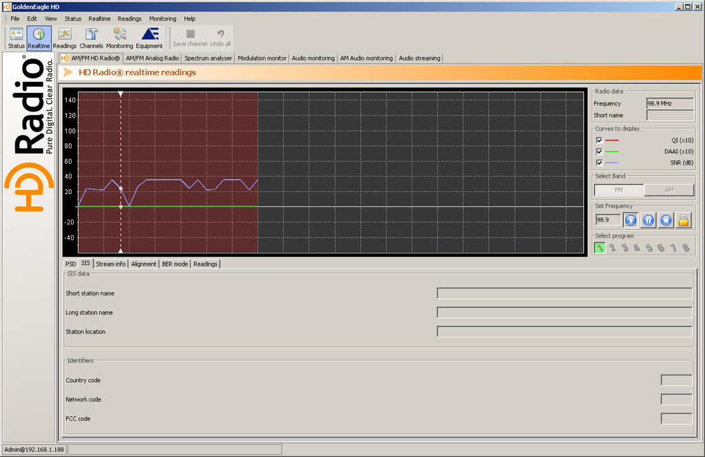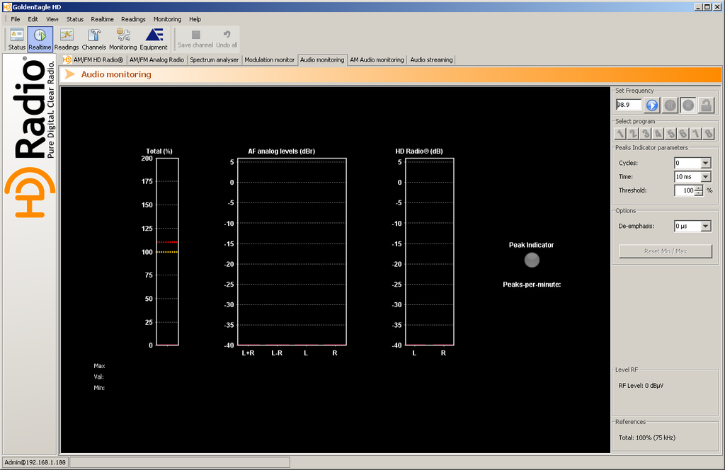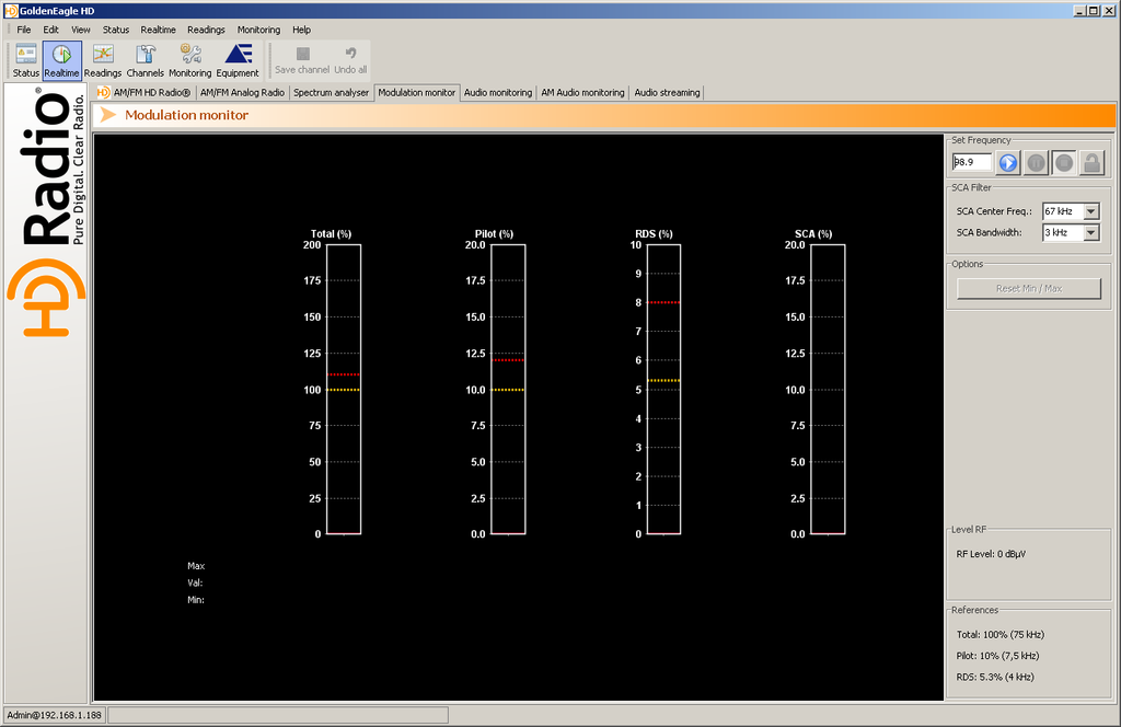 Monitor all analog and HD parameters for up to 10 AM and/or FM stations via TCP/IP. NRSC mask compliance, automatic time alignment measurements, audio silence sensing, optional remote control capabilities. Optional spectrum analyzer/digital demodulator for spectrum and modulation measurements. Broadcasters # 1 Choice for HD Monitoring!