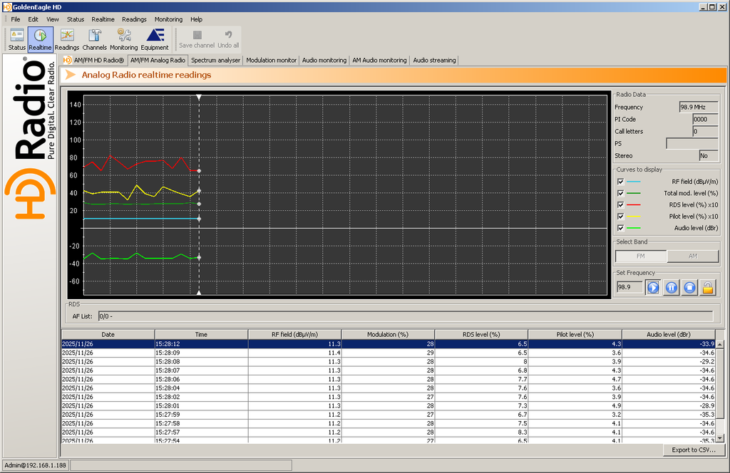 Audemat-Aztec Goldeneagle HD Radio AM FM Broadcast Monitor w/ Spectrum Analyzer