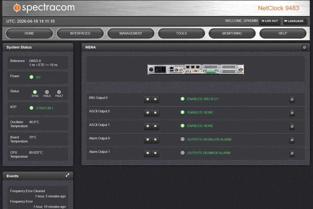 The Model 9483 NENA-compliant GPS master clock continues Spectracom's legacy of bringing essential time synchronization to public safety answering points (PSAPs) and other emergency and command and control systems.