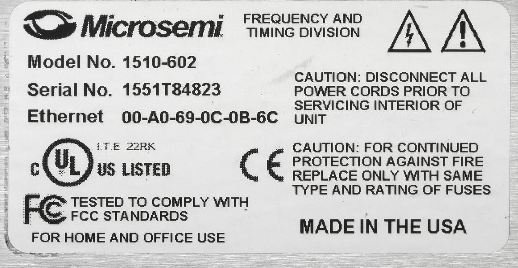 Here's a lightly used late model (2015 Microsemi-branded) Symmetricom XLi Time/Frequency unit in very good cosmetic condition and that has almost every option installed. The display on this fairly recent unit is very bright and clear. The unit has been tested and confirmed to operate as it should, including full GPS lock and correct time/date display. This unit does have the internal GPS receiver card (87-8028-2) installed which supplies 12 volts to the antenna, so the use of a matched Symmetricom AT575 12V antenna is recommended (not included but listed separately). The internal 10MHz oscillator is the upgraded OCXO type for greater free-running stability. The firmware has been upgraded to the latest version posted on the Symmetricom website (v2.4), and this supports reporting and configuration via a web interface. The unit does have the optional software based functions activated: NTP server, Time Interval/Event Timer (TIET), Frequency Measurement, Programmable Pulse Output. In addition there are four additional 10 Mhz Low Phase Noise outputs. Rack ears are provided as shown. In my testing I was able to achieve lock to GPS time and screenshots of the results of my testing are provided below. The photos show the actual item for sale. A few small nicks and scratches have been retouched with matching paint so the item will look smart when installed in your rack.