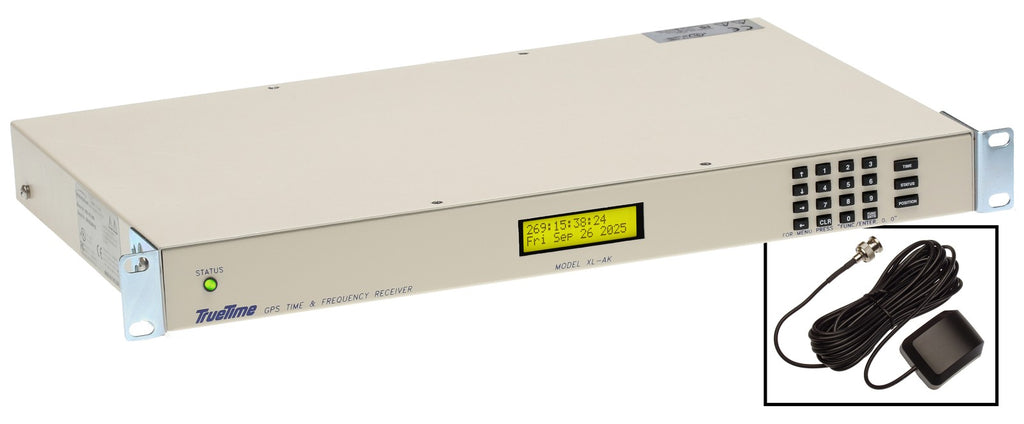 The rack-mount XL-AK GPS receiver provides ultra-precise time and frequency. This configurable instrument provides timing outputs to within 40 nanoseconds rms of UTC/USNO and frequency outputs accurate to less than 1x10-12, even when tracking satellites with Selective Availability (SA) implemented. User-configurable outputs provide significant flexibility in configuring the XL-AK as a central source for IRIG time codes or output pulses.