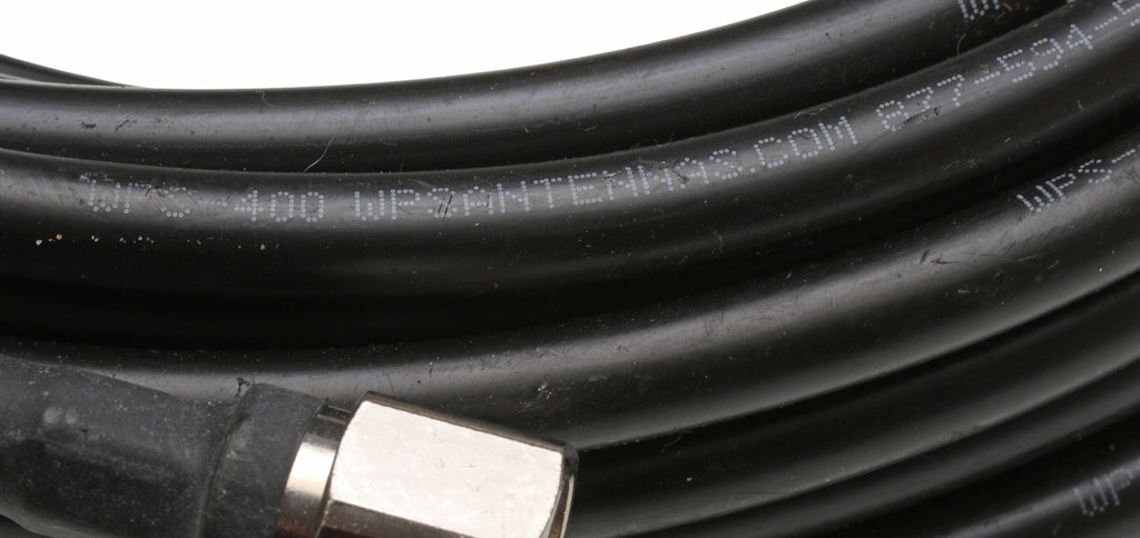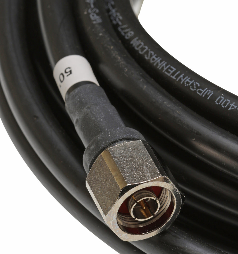 An unused pre-fabricated antenna/RF cable made from LMR-400 equivalent with professionally installed N-Male connectors at each end.