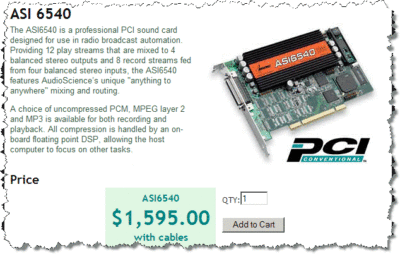 - The ASI6540 is a professional PCI sound card designed for use in radio broadcast automation.