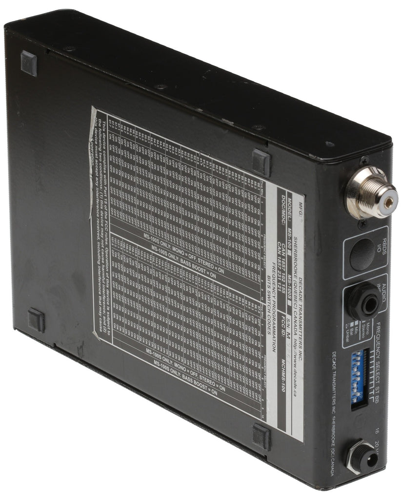 Decade MS-100 FM Mono Professional Low Power Audio Transmitter PL-259 SO-239-www.prostudioconnection.com